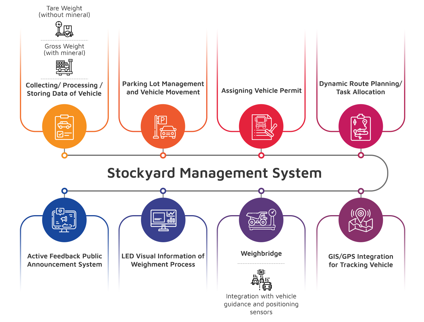 Our Stockyard Management System is a fully automated solution designed to enhance production throughput, accelerate mineral evacuation, and eliminate pilferage in the mining supply chain. Leveraging advanced technologies, the system ensures seamless stock tracking, real-time monitoring, and compliance with origin certification standards.